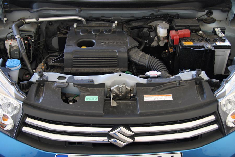 Την κίνηση του Celerio αναλαμβάνει ένα νέο 3κύλινδρο, 12βάλβιδο μηχανικό σύνολο βενζίνης 998 κ.εκ., απόδοσης 68 ίππων, το οποίο συνδυάζει τις σβέλτες επιδόσεις με χαμηλή κατανάλωση και πολιτισμένα χαρακτηριστικά λειτουργίας. Οι κραδασμοί που εμφανίζει είναι υπαρκτοί στο ρελαντί αλλά περιορισμένοι και ο θόρυβος που παράγει έχει λογική ένταση. Στα συν του μικρού μοτέρ είναι η πολύ καλή ελαστικότητα από τις χαμηλές στροφές, η ευκολία του να ανεβάζει στροφές και οι σβέλτες επιδόσεις που προσφέρει τόσο ελαφρύ αμάξωμα των μόλις 805 κιλών. Ο κινητήρας συνδυάζεται με εύχρηστο 5τάχυτο επιλογέα, του οποίου η τελευταία σχέση είναι πολύ μακριά προς όφελος της οικονομίας (120 χλμ./ώρα με 3.000 σ.α.λ.). Κατά τη διάρκεια της δοκιμής και σε αστική χρήση, η κατανάλωση κυμάνθηκε στα 5,6 λτ./100 χλμ., θυμίζοντας μικρό ντίζελ αυτοκίνητο.