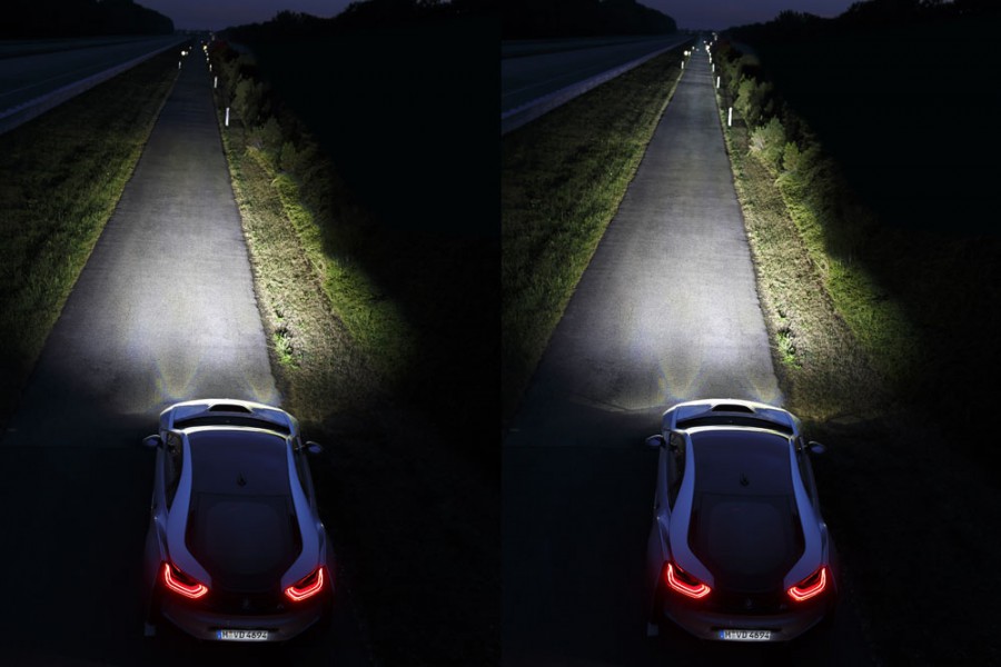 Από φέτος το φθινόπωρο, η BMW θα είναι η πρώτη κατασκευάστρια εταιρία αυτοκινήτων σε όλο τον κόσμο που θα προσφέρει ένα όχημα παραγωγής εφοδιασμένο με προβολείς φιλοσοφίας λέιζερ και πιο συγκεκριμένα το BMW i8. Και ενώ η βασική έκδοση του BMW i8 χρησιμοποιεί τους ενεργειακά αποδοτικούς και ισχυρούς λαμπτήρες LED σε όλες τις λειτουργίες φώτων, οι προαιρετικοί προβολείς λέιζερ προσφέρουν εμβέλεια μεγάλης σκάλας έως και 600 μέτρα. Αυτό σημαίνει ότι η ήδη υψηλή εμβέλεια φωτισμού μιας σύγχρονης μεγάλης σκάλας φώτων LED διπλασιάζεται. Με τη νέα τεχνολογία λέιζερ, η ενεργειακή απόδοση μπορεί να αυξηθεί κατά 30% επιπλέον συγκριτικά με τις ήδη πολύ αποδοτικές λυχνίες LED.