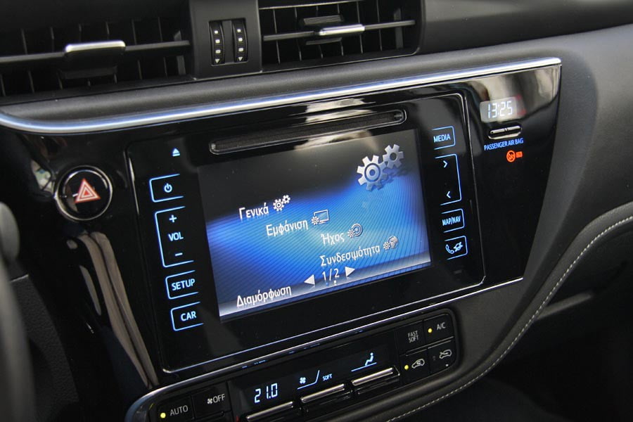 Αρκετές είναι οι αλλαγές που έχουν γίνει και στο εσωτερικό του ανανεωμένου Auris. Νέα είναι η κεντρική κονσόλα, ο πίνακας οργάνων, τα χειριστήρια του συστήματος κλιματισμού και οι επενδύσεις των καθισματων. Ο πίνακας οργάνων διαθέτει πιο σπορτίφ εικόνα και νέα οθόνη TFT 4,2 ιντσών με πολλές πληροφορίες. Στην κονσόλα κυριαρχεί η οθόνη αφής 7 ιντσών του εκσυγχρονισμένου συστήματος πολυμέσων και στο κάτω μέρος υπάρχει το πιο μοντέρνο σύστημα του κλιματισμού. Στο ταμπλό το διακοσμητικό με τη μεταλλική όψη αντικαταστάθηκε από μαλακό πλαστικό, το οποίο αναβαθμίζει την ποιότητα σε συνδυασμό και με το αφρώδες υλικό στο πάνω μέρος του ταμπλό. Ανασχεδιασμένα είναι ακόμα τα διακοσμητικά στις πόρτες, οι αεραγωγοί και ο επιλογέας των ταχυτήτων.