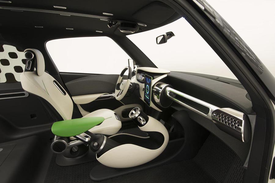 Πολύ μοντέρνο με μινιμάλ αισθητική είναι και το εσωτερικό, όπου κυριαρχεί το iPad στην κεντρική κονσόλα, από όπου ελέγχονται οι επιμέρους λειτουργίες αντί των «κλασικών» χειριστηρίων. Μεταξύ των highlights του εσωτερικού είναι το αφαιρούμενο κάθισμα του συνοδηγού, το σύστημα με τις ράγες για την συγκράτηση των αντικειμένων από ένα καλάθι μέχρι ένα ποδήλατο και η επιλογή ανάμεσα σε μια ποικιλία χρωμάτων και υλικών.