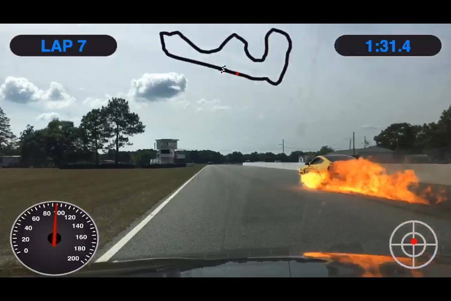 Κατά τη διάρκεια ενός αγώνα στην πίστα Roebling Road Raceway στην Γεωργία των Η.Π.Α., ο οδηγός και κάτοχος μιας νέας Shelby GT350 Mustang, ο Joe Charles γλίτωσε παρά λίγο από τις φλόγες που τύλιξαν ξαφνικά το αυτοκίνητό του.
