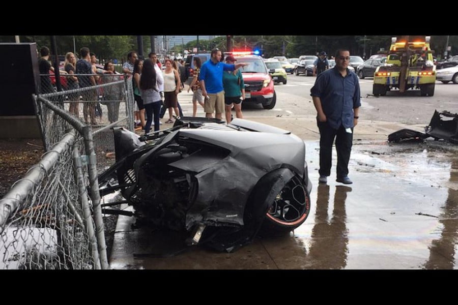 σκόρπισαν στο δρόμο. Σύμφωνα με το NBC Chicago, η Huracan προσέκρουσε με μια σεντάν Lincoln και κατόπιν το σπορ αυτοκίνητο χτύπησε στο φανάρι.