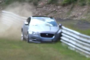 Ο οδηγός της Jaguar XJ Supersport Nürburgring Taxi έχασε τον έλεγχο του αυτοκινήτου στην «Πράσινη Κόλαση» πηγαίνοντας ευθεία σε μια στροφή, με αποτέλεσμα να χτυπήσει το πλαϊνό του τμήμα του αμαξώματος στις προστατευτικές μπαριέρες, όπως μπορείτε να παρακολουθήσετε στα video παρακάτω. Ακόμα δεν έχουν εξακριβωθεί τα αίτια του ατυχήματος, ωστόσο κανένας από τους επιβάτες δεν έπαθε το παραμικρό από την «ήπια» έξοδο του αυτοκινήτου.