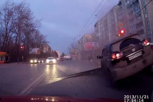 Η οδήγηση στην Ρωσία μάλλον μοιάζει με… ρώσικη ρουλέτα, καθώς συμβαίνουν μύρια απρόσμενα ατυχήματα, όπως βλέπουμε συχνά από τα video (δείτε εδώ) που δημοσιεύονται στο διαδίκτυο. Αυτή τη φορά δεν συμβαίνει κάποια πρόσκρουση μεταξύ οχημάτων, αλλά ξαφνικά η άσφαλτος εκρήγνυται, πιθανώς από κάποιο σωλήνα νερού που ανοίγει και σταματάει τον οδηγό του Toyota, ο οποίος βιάζεται να περάσει με κόκκινο φανάρι. Ίσως τελικά η άσφαλτος που έσκασε τον έσωσε από τα χειρότερα…