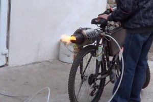 Ο Ρουμάνος εφευρέτης Paul Oaida παρουσιάζει το αεριωθούμενο ποδήλατο mountain bike, στο πίσω μέρος του οποίου έχει τοποθετηθεί ο jet κινητήρας που «γυρίζει» με 93.000 σ.α.λ. και ο ήχος που παράγει είναι αντίστοιχος με αεροπλάνου. Το μοτέρ καίει ένα μείγμα από βενζίνη, πετρέλαιο και λάδι, ενώ η ταχύτητα του ποδηλάτου μπορεί να μην είναι… υπερηχητική αλλά φτάνει τα 41 χλμ./ώρα. Για το όλο εγχείρημα ο Paul Oaida χρειάστηκε 3 χρόνια και δαπάνησε το ποσό των 5.000 δολαρίων (περίπου 3.600 ευρώ).