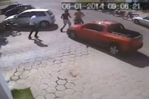 Ένα ζευγάρι κλεφτών που επέβαιναν σε μηχανάκι και κρατούσαν όπλα, προσπάθησαν να ληστέψουν επιχειρηματία στη Βραζιλία, ο οποίος μόλις είχε βγει από το αυτοκίνητό κρατώντας πιθανώς μια τσάντα. Αφού τον ακινητοποίησαν και του πήραν αυτό που είχε στα χέρια του, ξαφνικά ως από μηχανής θεός εμφανίστηκε ένα pick up από πίσω και τους εμβόλισε. Ο ένας ληστής πρόλαβε και έφυγε, όχι όμως και ο άλλος που τον έβαλαν κάτω οι περαστικοί και του έριξαν το ξύλο της χρονιάς του!