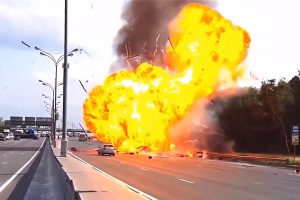 ‘Ενα τρομακτικό ατύχημα συνέβη στην Ρωσία, όπου ένα φορτηγό το οποίο μετέφερε φιάλες υγραερίου προσέκρουσε πίσω από λεωφορείο και στο δευτερόλεπτο οι φιάλες άρχισαν να εκρήγνυνται η μία πίσω από την άλλη. Φυσικά από ένα τέτοιο γεγονός δεν έλειψαν και οι απερίσκεπτοι περίεργοι που βρίσκονταν κοντά για να δουν τι συμβαίνει, ενώ σε κοντινή απόσταση περνούσαν θραύσματα και φιάλες που έσκαγαν σαν βόμβες.