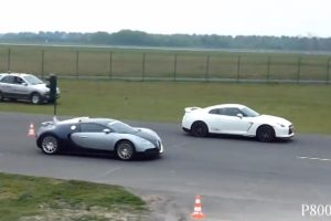 Δύο από τα πιο ποθητά και άκρως δυναμικά σπορ αυτοκίνητα στον κόσμο, ένα Nissan GT-R και μια Bugatti Veyron κοντράρονται στο 400άρι και το αποτέλεσμα κρίνεται στο τελευταίο μέτρο! Πληροφοριακά, το GT-R είναι βελτιωμένο και αποδίδει τουλάχιστον 800 ίππους, ενώ η Veyron διαθέτει τροποποιημένο σύστημα εξάτμισης και απόδοση τουλάχιστον 1.200 ίππων.