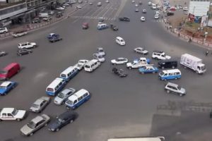 Η πλατεία Meskel στην πρωτεύουσα της Αιθιοπίας, την Αντίς Αμπέμπα δεν έχει φωτεινούς σηματοδότες, ενώ διασταυρώνονται τουλάχιστον 16 λωρίδες! Στο σύντομο video φαίνεται πως κυριαρχεί το απόλυτο χάος, ωστόσο τελικά η κίνηση ρέει ομαλά, ενώ δεν υπάρχει κάποια σύγκρουση.