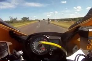 Ένας μοτοσικλετιστής που έτρεχε με 260 χλμ./ώρα ήρθε ξαφνικά αντιμέτωπος με ένα φίδι, το οποίο εμφανίστηκε πίσω από το φαίρινγκ και άρχισε να σέρνεται στη δεξαμενή καυσίμου. Ο αναβάτης στάθηκε πολύ ψύχραιμος αφού παρά τον απρόσμενο και επικίνδυνο επισκέπτη δεν πανικοβλήθηκε, ενώ γλίτωσε από το δηλητηριώδες δάγκωμα.