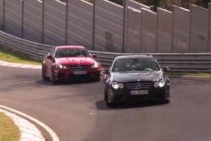 Δύο κορυφαίες εκδόσεις AMG, μια CLK 63 AMG Black Series και η νεότερη C 63 AMG Coupe Black Series κυνηγιούνται στο Nurburgring και συναρπάζουν με το βαθύ γουργουρητό των V8 κινητήρων τους αλλά και με σκασίματα στις αλλαγές ταχυτήτων. Πληροφοριακά η CLK 63 AMG Black Series τροφοδοτούνταν με 6.2 λίτρων κινητήρα απόδοσης 507 ίππων και 630 Nm ροπής και η C 63 AMG Coupe Black Series με τον ίδιο 6.2 λίτρων V8 με 517 ίππους και 620 Nm ροπής.