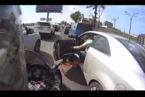 Η ενδιάμεση κίνηση μοτοσικλέτας (ή διήθηση) στα αυτοκίνητα εκτός από το ότι απαγορεύεται σε πολλές χώρες -μεταξύ αυτών και στην Ελλάδα, είναι πάρα πολύ επικίνδυνη, αφού εύκολα μπορεί να προκληθεί ατύχημα. Κάτι ανάλογο συνέβη και σε δρόμο της Λευκορωσίας, όπου ένας μοτοσικλετιστής δεν προλαβαίνει να αποφύγει την σύγκρουση με πόρτα που ανοίγει λίγα μέτρα μπροστά του ένας πολύ απρόσεκτος οδηγός αυτοκινήτου. Ευτυχώς τουλάχιστον κανένας δεν τραυματίστηκε.