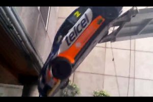 Σφοδρή σύγκρουση με το έδαφος είχε ένα αγωνιστικό SEAT Leon Cupra όχι όμως κατά τη διάρκεια ενός αγώνα αλλά στη μεταφορά του. Το αυτοκίνητο φορτώθηκε σε πλατφόρμα, η οποία ξεκίνησε να ανυψώνεται, μόνο που οι υπεύθυνοι του γερανού ξέχασαν να δέσουν το αυτοκίνητο. Παρά τις φιλότιμες προσπάθειες του χειριστή να την ισορροπήσει συνέβη το αναπόφευκτο, δηλαδή το Leon έκανε βουτιά στο έδαφος από μεγάλο ύψος.
