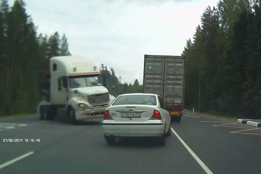 Μία από τις χειρότερες καταστάσεις που μπορεί να τύχει σε έναν οδηγό αλλά και στους επιβάτες είναι να έρθουν αντιμέτωποι με βαρύ όχημα, το οποίο κατευθύνεται ανεξέλεγκτα προς το όχημά τους, χωρίς να υπάρχουν παράλληλα μεγάλα περιθώρια αντίδρασης. Στο πρώτο βίντεο ο λευκός τράκτορας γλιστράει και περνάει στο αντίθετο ρεύμα, όμως ευτυχώς αποφεύγονται στο χιλιοστό οι μοιραίες πολλαπλές συγκρούσεις. Στο δεύτερο βίντεο (το ατύχημα συνέβη στις 14/06/2014 και όχι στην ημερομηνία που αναγράφεται) ο κόκκινος τράκτορας χάνει την πρόσφυση στο βρεγμένο δρόμο και «παίρνει» μαζί του 5 οχήματα. Παρά την σφοδρότητα της σύγκρουσης όλοι οι επιβάτες κατάφεραν και βγήκαν ζωντανοί χωρίς σοβαρούς τραυματισμούς.