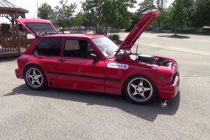 Ένα από αυτές τις χιλιάδες των Yugo που πωλήθηκαν στις Η.Π.Α. είναι και το μοντέλο του 1986 που θα παρακολουθήσετε στο βίντεο, μόνο που δεν έχει καμία σχέση με τα γνωστά Yugo, τα οποία εφοδιάζονταν με κινητήρες 1.1 και 1.3 λίτρων απόδοσης έως 65 ίππων. Το συγκεκριμένο «Yugo-τούμπανο» φοράει δύο V8 κινητήρες της Cadillac, έναν 8.2 λίτρων εμπρός από Cadillac Eldorado και έναν μεγαλύτερο στο πορτ μπακγάζ – καμπίνα. Το βάρος τους είναι πολύ πιθανό να είναι μεγαλύτερο από αυτό του αυτοκινήτου.