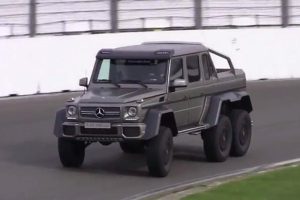 Το θηριώδες και άκρως επιβλητικό εκτός δρόμου όχημα Mercedes G 63 AMG 6×6 αφήνει τους κακοτράχαλους δρόμους και τις γενικότερα δύσβατες διαδρομές και μπαίνει σε αγωνιστική πίστα παρέα με Ferrari, McLaren, Porsche, Lamborghini και άλλα σπορ αυτοκίνητα. Σίγουρα οι οδηγοί των supercars θα νιώθουν λες και μπήκε κάποιο τέρας ανάμεσά τους που τους κυνηγάει για να τους καταβροχθίσει, ενώ σωστά πράττουν και κρατούν μεγάλη απόσταση γιατί υπάρχει το ενδεχόμενο να περάσει εύκολα από πάνω τους το G 63 AMG 6×6 και ο οδηγός του να νομίζει ότι πέρασε καμιά… λακκούβα.