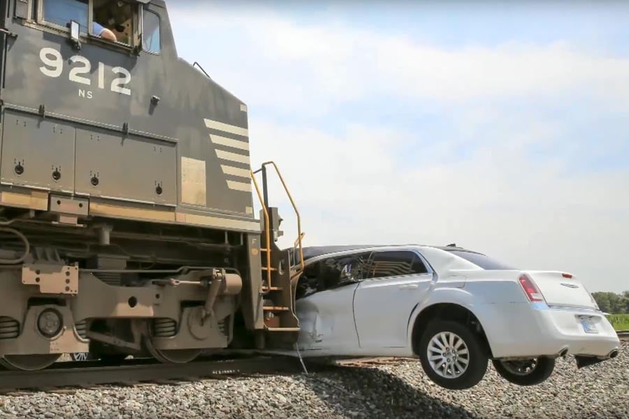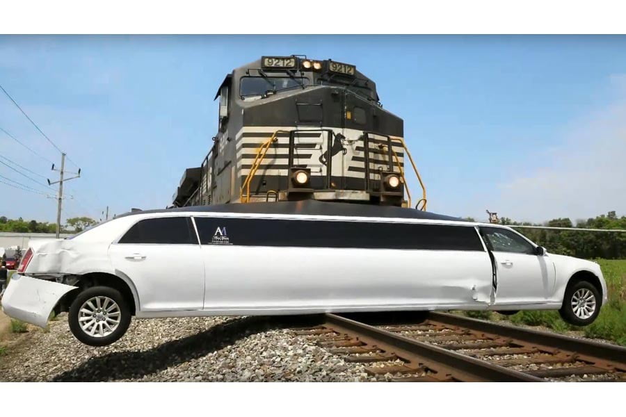 Μια επιμηκυμένη λιμουζίνα Chrysler 300C στην οποία επέβαιναν έφηβοι που γιόρταζαν πάρτι γενεθλίων, κόλλησε σε διάβαση τρένου και έμεινε ακυβέρνητη πάνω στις ράγες. Λόγω του πολύ μακριού μεταξονίου βρήκε η «κοιλιά» του αυτοκινήτου και οι τροχοί του σηκώθηκαν στον αέρα με αποτέλεσμα να μην μπορεί να μετακινηθεί. Ευτυχώς οι επιβάτες πρόλαβαν και διέφυγαν λίγα λεπτά πριν περάσει η εμπορική αμαξοστοιχία και παρασύρει την λιμουζίνα.