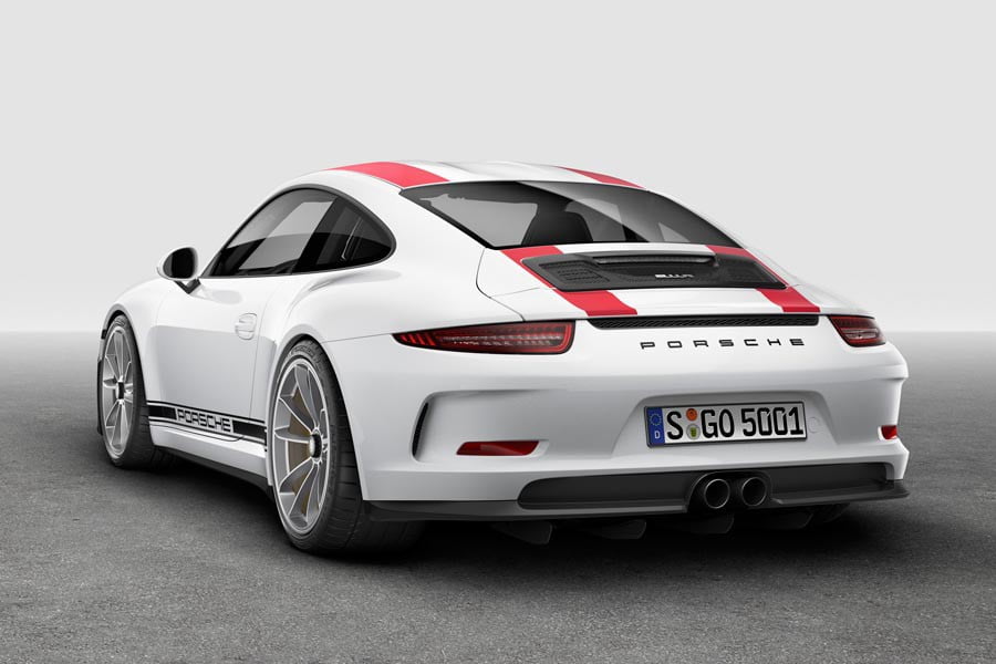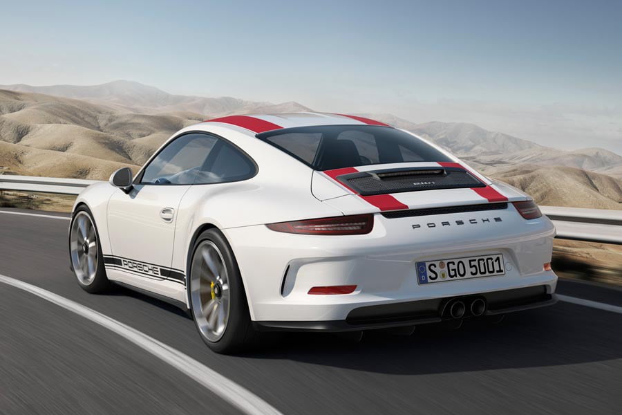 Μία νέα έκδοση της 911 παρουσιάζει η Porsche, η οποία συνδυάζει τον κλασικό λιτό σχεδιασμό με την υψηλή οδηγική εμπειρία. Κάτω από το πανέμορφο λευκό αμάξωμα της νέας Porsche 911 R (Racing) με τις κόκκινες ρίγες, που παραπέμπει στο αγωνιστικό μοντέλο του 1967, φιλοξενείται στο πίσω μέρος ο ατμοσφαιρικός επίπεδος 4.0 λτ. κινητήρας (γνωστός από την 911 GT3 RS) απόδοσης 500 ίππων στις 8.250 σ.α.λ. και με ροπή 460 Nm στις 6.250 σ.α.λ.