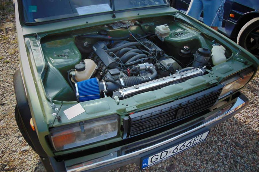 Ένα παλιό «τετράγωνο» Lada 2107 από την Πολωνία κρύβει μια πολύ ευχάριστη έκπληξη κάτω από το εμπρός καπό του, αφού χώρεσε ένα V8 3λιτρο μηχανικό σύνολο (Μ60Β30) από BMW 730i Ε32. Ο εν λόγω κινητήρας είχε εργοστασιακή απόδοση 218 ίππων και 290 Nm ροπής και επιτάχυνε το βαρύ αμάξωμα των 1.8 τόνων της «7άρας» στα 0-100 χλμ./ώρα σε 9,3 δευτερόλεπτα.
