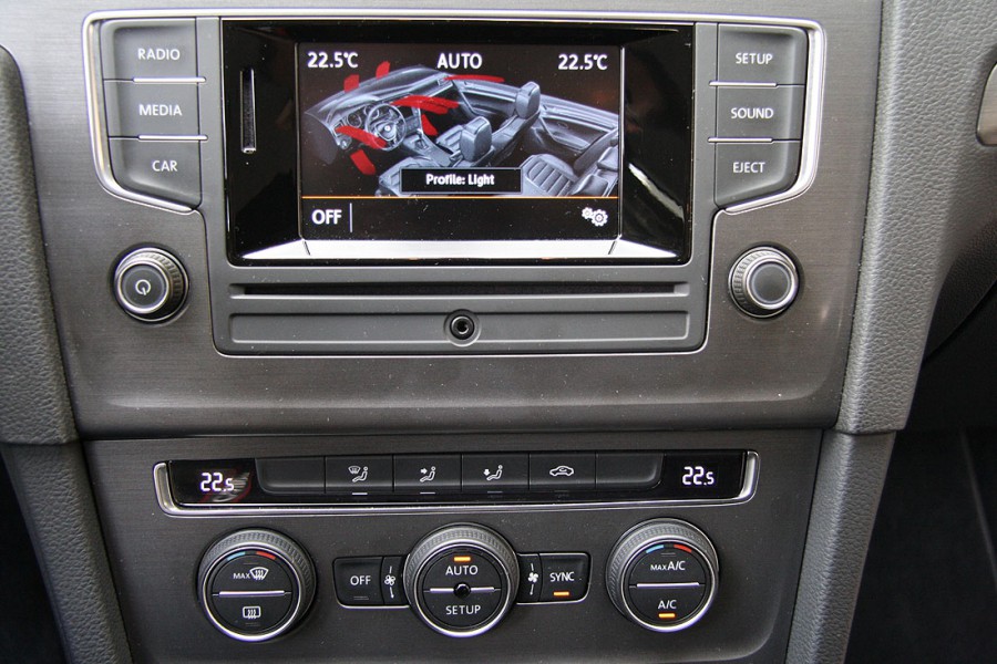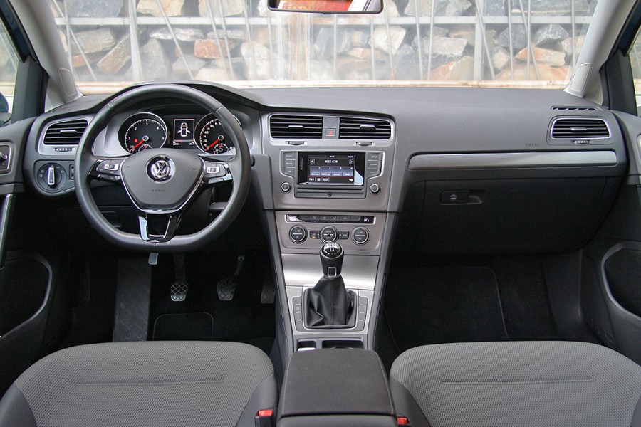 Ο θάλαμος επιβατών του νέου Golf κερδίζει αμέσως τις πρώτες εντυπώσεις με την πολύ καλή ποιότητα κατασκευής του και όχι με την άτολμη και συντηρητική του σχεδίαση, που «συνηθίζεται» γρήγορα. Το παχύ αφρώδες υλικό που καλύπτει ολόκληρο το πάνω μέρος του ταμπλό, η άψογη συναρμογή μεταξύ των επιμέρους επιφανειών και το προσεγμένο φινίρισμα συνθέτουν ένα αποτέλεσμα, το οποίο ενισχύει περεταίρω την όλη στιβαρή εικόνα που εισπράττει κανείς από το αυτοκίνητο. Παράλληλα «τυπικά» για Golf, ο οδηγός θα βρει εύκολα την κατάλληλη θέση μέσω και των πολλαπλών ρυθμίσεων σε κάθισμα και τιμόνι, τα επιμέρους χειριστήρια είναι σωστά τοποθετημένα, ενώ δεν λείπουν οι απαραίτητες θήκες για μικρά και πιο μεγάλα αντικείμενα, καθώς και για ποτήρια. Βελτιωμένοι με την σειρά τους παρουσιάζονται οι διαθέσιμοι χώροι για τους επιβάτες και τις αποσκευές, αφού ο αέρας για τα γόνατα των πίσω φιλοξενούμενων δε διαφέρει από μεσαίου αυτοκινήτου και ο χώρος αποσκευών με το διπλό δάπεδο μεγάλωσε κατά 30 λίτρα, φτάνοντας τα 380 λίτρα.