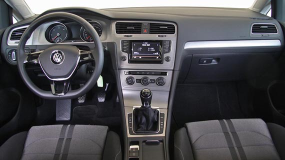 Η αίσθηση στιβαρότητας που αποπνέει το αμάξωμα του Volkswagen Golf, ισχύει και για την κατασκευή του εσωτερικού, το οποίο αποτελεί υπόδειγμα ποιότητας στη μικρομεσαία -και όχι μόνο- κατηγορία. Στην θετική αίσθηση που εισπράττει άμεσα αυτός που θα εισέλθει στο εσωτερικό του συμβάλλουν το παχύ αφρώδες υλικό που καλύπτει ολόκληρο το ταμπλό, η άψογη συναρμογή μεταξύ των επιμέρους επιφανειών, το προσεγμένο φινίρισμα και οι «καθαρές» επίπεδες επιφάνειες. Ο οδηγός από την πλευρά του νιώθει αμέσως «ένα» με το αυτοκίνητο αφού βρίσκει εύκολα την ιδανική θέση οδήγησης, ενώ όλα τα επιμέρους χειριστήρια είναι εύχρηστα και σωστά τοποθετημένα. Λίγο περισσότερος χρόνος ίσως θα πρέπει να αφιερωθεί αρχικά για τις πάρα πολλές λειτουργίες και πληροφορίες που περιλαμβάνει το σύστημα πολυμέσων με την έγχρωμη οθόνη αφής των 5 ιντσών.