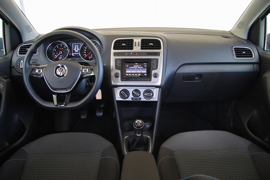 Όπως το αμάξωμα, έτσι και το εσωτερικό του Polo διαθέτει συντηρητικό σχεδιασμό, ενώ η χρήση σκληρού πλαστικού στο ταμπλό στην έκδοση BlueMotion δεν συμβαδίζει με την τιμή του αυτοκινήτου. Παρόλα αυτά η ποιότητα κατασκευής του εσωτερικού είναι από τις καλύτερες που μπορεί να βρει κανείς σε μικρό αυτοκίνητο, χάρη και στην προσεγμένη συναρμογή και φινίρισμα. Ο οδηγός δεν θα δυσκολευτεί να βρει την κατάλληλη θέση και να εξοικειωθεί γρήγορα με τις θέσεις και λειτουργίες των επιμέρους χειριστηρίων. Ικανοποιητικοί είναι οι διαθέσιμοι χώροι για τις μετακινήσεις τεσσάρων επιβατών, όπως και το πλήρως εκμεταλλεύσιμο πορτ μπαγκάζ των 280 λίτρων.