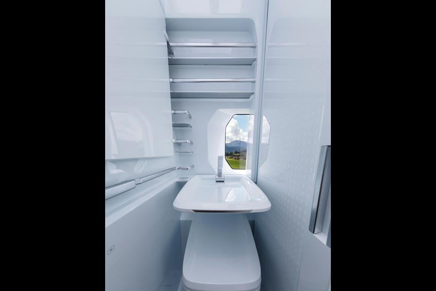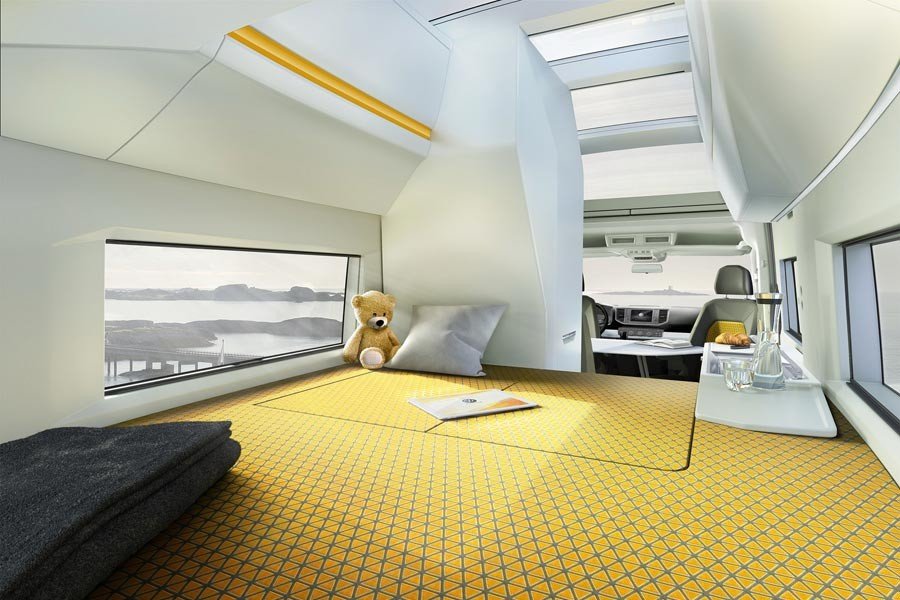 Στο πίσω μέρος συναντούμε ένα άνετο κρεβάτι 2 μέτρων, το οποίο ψύχεται και θερμαίνεται, ενώ μπορεί και αυτό να αναδιπλωθεί δημιουργώντας έναν χώρο σαλονιού. Υπάρχουν επιπλέον δύο ειδικές κουκέτες, που μπορούν να φιλοξενήσουν 2 παιδιά, ενώ όλο το δάπεδο του οχήματος είναι θερμαινόμενο.