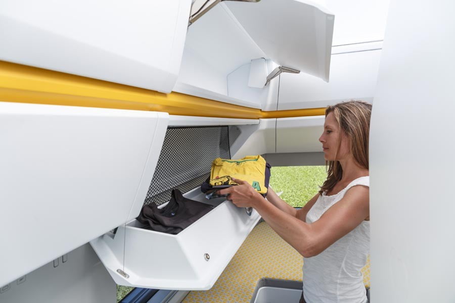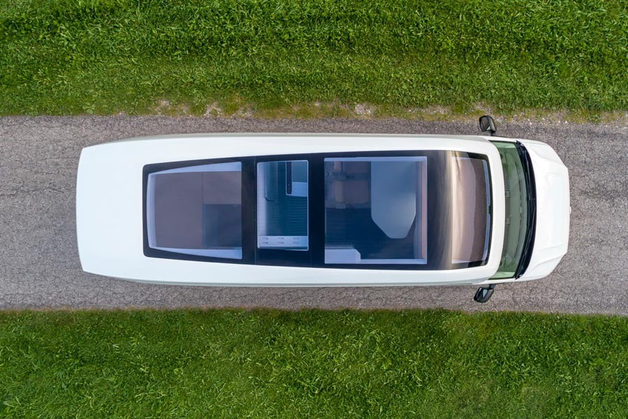 Στο εσωτερικό του τροχόσπιτου, συναντούμε αρχικά έναν καναπέ πίσω από τα εμπρόσθια καθίσματα, τα οποία περιστρέφονται κατά 180 μοίρες για να δημιουργηθεί ένα ευρύχωρο σαλόνι. Παράλληλα, προσφέρεται ένα αρκετά μεγάλο εσωτερικό ύψος 2,2 μέτρων, επιτρέποντας έτσι να σταθούν όρθιοι και οι πιο υψηλοί.