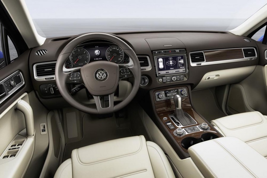 Στο εσωτερικό του το ανανεωμένο Touareg είναι και εκεί πιο όμορφο με αναβαθμισμένο διάκοσμο και νέους διακόπτες παραμένοντας φυσικά κορυφαίο ποιοτικά και με έμφαση στην πολυτέλεια για άλλη μια φορά. Αναβαθμισμένος θα είναι και ο εξοπλισμός του αφού θα περιλαμβάνει επιπλέον συστήματα ασφάλειας και άνεσης.