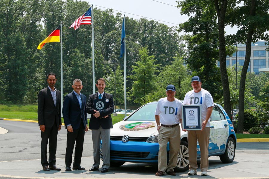 Το μικρομεσαίο Volkswagen πέτυχε μέση κατανάλωση καυσίμου μόλις 81,17 μίλια ανά γαλόνι (2,89 λτ./100 χλμ.), καταρρίπτοντας το προηγούμενο ρεκόρ των 3,01 λτ./100 χλμ. και 3,16 λτ./100 χλμ. του υβριδικού. Συνολικά το Golf 2.0 TDI Clean Diesel διένυσε 13.250 χλμ. στις Η.Π.Α. καταναλώνοντας σχεδόν 384 λίτρα πετρελαίου, που αντιστοιχούν με τα δεδομένα τιμών στην χώρα μας (1,240 €/λτ.) με 476 ευρώ.