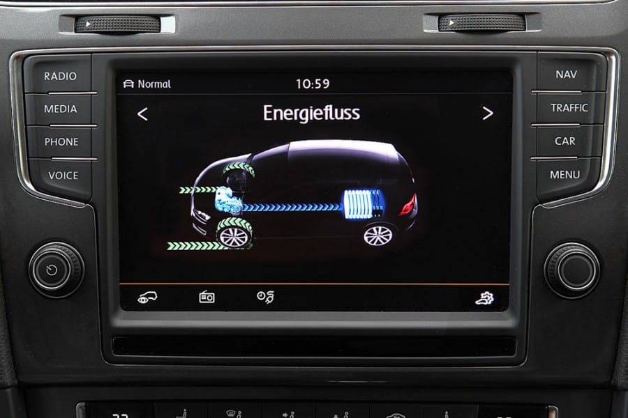 Στο ηλεκτρικό e-Golf υπάρχουν κάποιες αλλαγές στην σχεδίαση, οι οποίες εντοπίζονται στους προφυλακτήρες, στη μάσκα και στα πίσω φωτιστικά σώματα, ενώ για καλύτερη αεροδυναμική έχει χαμηλώσει το αμάξωμα. Ο ηλεκτροκινητήρας αποδίδει 115 ίππους και 270 Nm ροπής, επιταχύνει το αυτοκίνητο από τα 0-100 χλμ./ώρα σε 11,8 δευτερόλεπτα και η τελική του ταχύτητα αγγίζει τα 135 χλμ./ώρα. Ο ηλεκτροκινητήρας αντλεί την ενέργειά του από μια συστοιχία μπαταριών ιόντων λιθίου βάρους 315 κιλών και χωρητικότητας 26,5 kWh, που βρίσκεται κάτω από τα πίσω καθίσματα, με την αυτονομία τους να φτάνει τα 175 χιλιόμετρα ανάλογα με την συνθήκες οδήγησης. Η φόρτιση των μπαταριών γίνεται σε μόλις 20 λεπτά με την χρήση της ταχείας τριφασικής φόρτισης και σε 5 ώρες με την οικιακή παροχή, ενώ η VW δίνει εγγύηση καλής λειτουργίας για το σύστημα 10 ετών. Στο εσωτερικό οι αλλαγές εντοπίζονται στις ενδείξεις της μπαταρίας στον πίνακα οργάνων και στην οθόνη της κεντρικής κονσόλας, όπου απεικονίζεται και η λειτουργία του συστήματος. Επιπλέον υπάρχουν τρεις επιλογές οδήγησης, οι Normal, Eco και Range για καλύτερες επιδόσεις ή αυτονομία αντίστοιχα.