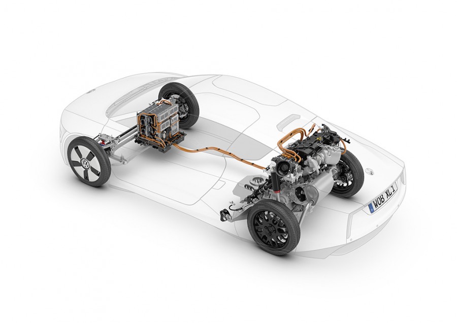 Μόλις πριν από λίγα λεπτά η Volkswagen παρουσίασε το φουτουριστικό plug-in υβριδικό XL1 παραγωγής, το οποίο με κατανάλωση καυσίμου μόλις 0,9 λτ./100 χλμ. είναι το πιο οικονομικό αυτοκίνητο παγκοσμίως. Το πισωκίνητο XL1 κινείται από ένα υβριδικό σύνολο με 2κύλινδρο TDI κινητήρα 0.8 λίτρων (θα εφοδιάσει και το up! και προέρχεται από τον 1.6 TDI) ισχύος 48 ίππων, τοποθετημένο στον πίσω άξονα και ηλεκτροκινητήρα απόδοσης 27 ίππων (τοποθετημένο εμπρός), DSG7 κιβώτιο ταχυτήτων και μπαταρία ιόντων λιθίου.