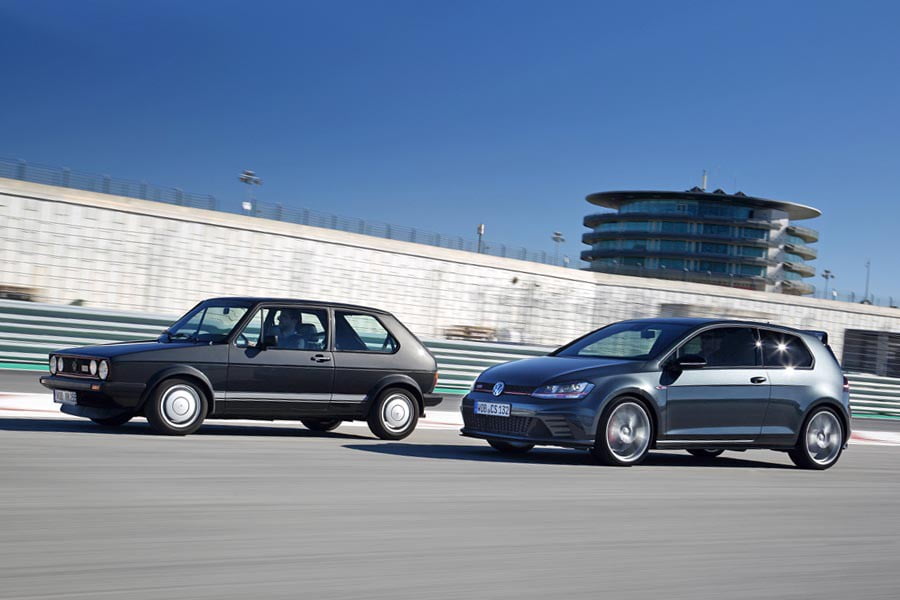 Δύο εικονικά αυτοκίνητα, συναντήθηκαν για πρώτη φορά στην πίστα Portimao της Πορτογαλίας. Πρόκειται για το πρώτο επετειακό Golf GTI Pirelli του 1983 και το νεότερο Golf GTI Clubsport, με το οποίο το 2016 η VW θα γιορτάσει τα 40ά γενέθλια του Golf GTI.