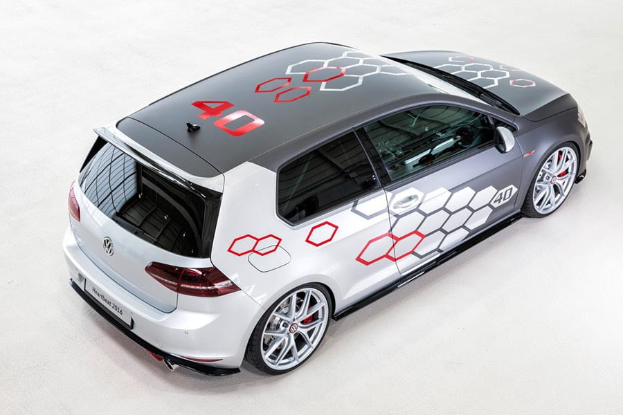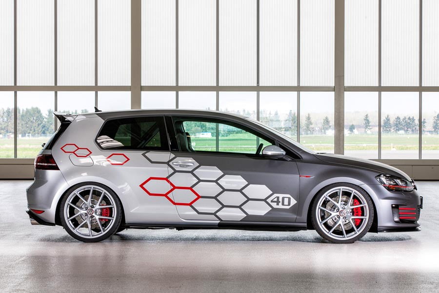 Εξωτερικά το σπορ 3πορτο Golf χαρακτηρίζεται από το τη διχρωμία γκρι – ασημί με τα σχέδια σε σχήμα κυψελών που υπάρχουν στα πλαϊνά, στο καπό και στην οροφή, όπου παράλληλα αναγράφεται και ο αριθμός «40», συμβολίζοντας την επέτειο των 40 ετών του Golf GTI. Επιπλέον, ξεχωρίζουν οι 20 ιντσών ζάντες αλουμινίου, πίσω από τις οποίες υπάρχουν οι κόκκινες δαγκάνες με το λογότυπο «GTI» και τα αεριζόμενα – τρυπητά δισκόφρενα.