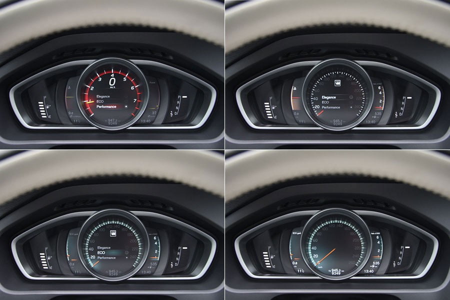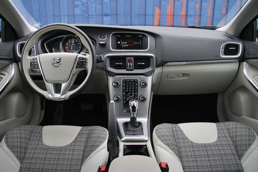 Στην καμπίνα του Volvo V40 Cross Country η ανανέωση έφερε μόνο αλλαγές σε χρώματα και επενδύσεις, όπως τα πανέμορφα καρώ υφάσματα που συνδυάζονται με ανοιχτόχρωμα δέρματα στο αυτοκίνητο της δοκιμής μας. Από εκεί και πέρα η σχεδίαση παραμένει χωρίς διαφοροποιήσεις, με την λεπτή χρωμιωμένη κεντρική κονσόλα να δίνει μια μινιμαλιστική και πολύ μοντέρνα ντιζαϊνάτη αίσθηση, αλλά και τον πίνακα οργάνων με τα ψηφιακά όργανα που αλλάζουν μοτίβο (ανάλογα με την επιλογή «Elegance», «Eco» ή «Performance») να ξεχωρίζει. Τα υλικά που έχουν επιλεγεί είναι από τα πλέον ποιοτικά, αφού υπάρχει άφθονο μαλακό πλαστικό στο ταμπλό και το εσωτερικό των θυρών, ενώ και η συναρμογή και το φινίρισμά τους ικανοποιούν. Στους χώρους, το V40 Cross Country έχει ένα 4θέσιο εσωτερικό που θα μεταφέρει με αρκετές παραχωρήσεις για τα γόνατα και τα κεφάλια τους πίσω επιβάτες, ιδίως εάν αυτοί ξεπερνούν το μέσο όρο ύψους. Το πορτ-μπαγκάζ, με 335 λίτρα είναι από τα μικρότερα στην κατηγορία, όμως εάν αναδιπλωθούν τα πίσω καθίσματα ο όγκος αυξάνεται στα 1.032 λίτρα.