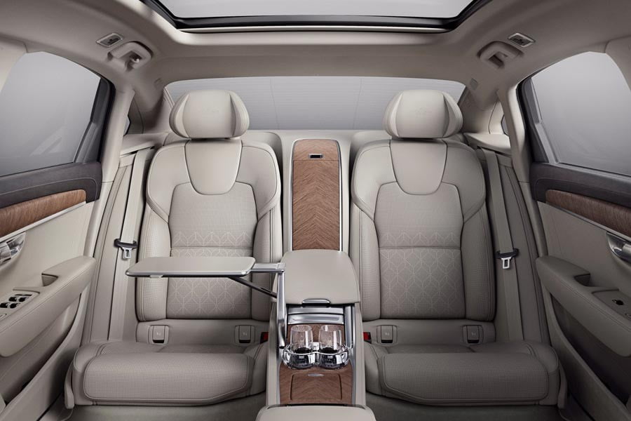 Για το λόγο αυτό, η υπέρτατη πολυτέλεια είναι εμφανής παντού, τόσο στα ακριβά υλικά που χρησιμοποιούνται όσο και στις λύσεις που έχουν υιοθετηθεί για να κάνουν τη ζωή των δύο επιβατών της πίσω θέσης ακόμα πιο άνετη και απολαυστική, προσφέροντας μία μοναδική εμπειρία πολυτέλειας. Χαρακτηριστικά, ανάμεσα σε άλλα το S90 Excellence διαθέτει μεγάλη πανοραμική ηλιοροφή, θερμαινόμενες και ψυχόμενες θέσεις για ποτά, ρυθμιζόμενα υποπόδια, οπτικοακουστικό σύστημα ψυχαγωγίας με μεγάλη οθόνη, ενσωματωμένο ψυγείο και κρυστάλλινα ποτήρια του διάσημου Σουηδού κατασκευαστή Orrefors.