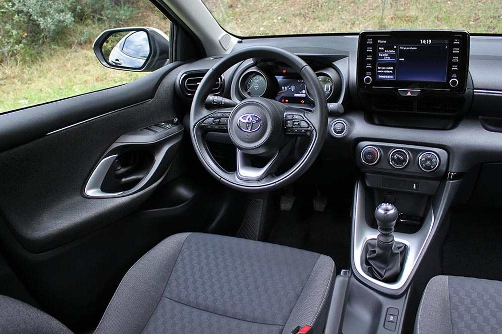 Το νέο Toyota Yaris με τη δυναμική εμφάνιση εξωτερικά, διαθέτει αντίστοιχα και ένα νεανικό εσωτερικό με παιχνιδιάρικο στυλ, αποτελούμενο από πολλές καμπύλες επιφάνειες. Για πρώτη φορά η Toyota βάζει μαλακό υλικό στο ταμπλό του Yaris, ενώ ακόμα και εκεί που υπάρχει σκληρό, δεν υπάρχουν παράπονα για το συνδυασμό ποιότητας – συναρμογής. Η εργονομία σε γενικές γραμμές είναι απροβλημάτιστη, εκτός από τους πολύ ψηλά τοποθετημένους διακόπτες των ηλεκτρικών παραθύρων στην πόρτα του οδηγού. Οι χώροι επίσης κυμαίνονται σε ικανοποιητικά επίπεδα, χωρίς περίσσευμα, κάτι που ισχύει και για το μικρό πορτ μπαγκάζ των 286 λίτρων.