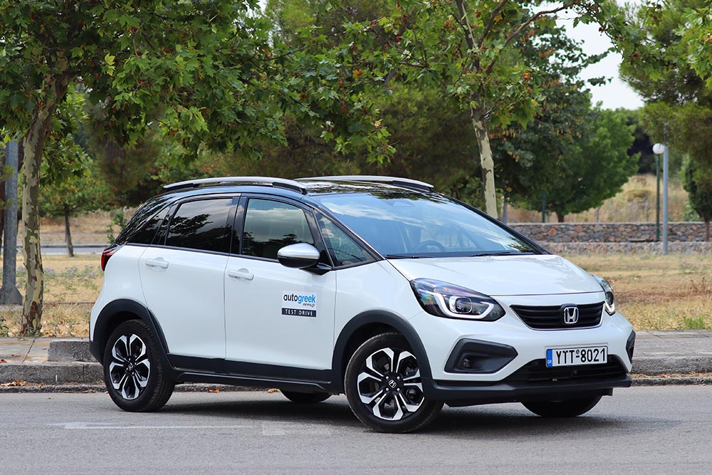Στοιχεία που μπορεί να τα βρει κανείς στο νέο και αποκλειστικά υβριδικό Honda Jazz Crosstar. Οι διαφορές του σε σχέση με τις πιο «απλές» εκδόσεις είναι αρκετές, ξεκινώντας από την εξωτερική εμφάνιση. Η πιο κομψή μάσκα, τα μαύρα προστατευτικά πλαστικά τμήματα στους προφυλακτήρες, τους θόλους των τροχών και χαμηλά στις πόρτες, οι ράγες οροφής και τα 152 χλστ. από το έδαφος, τονίζουν το πιο «εκτός δρόμου» προφίλ του.
