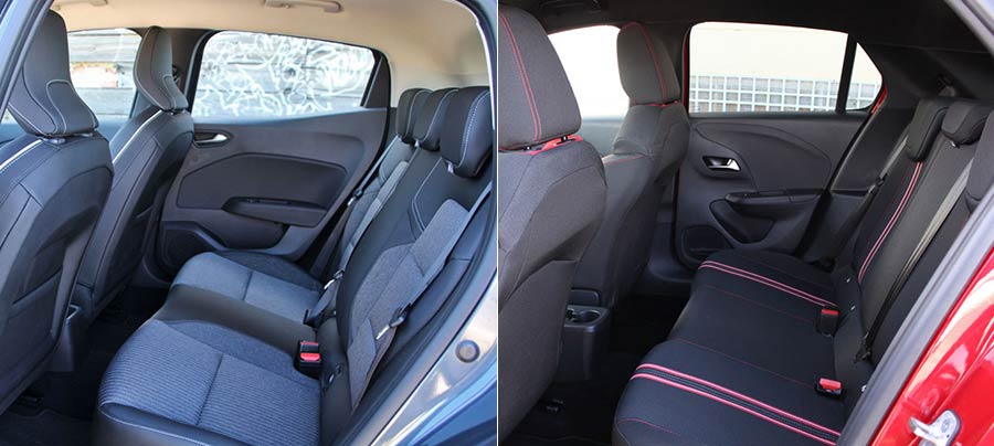 Στο Clio οι επιβάτες θα νιώσουν σαφώς πιο άνετα εξαρχής, χάρη στα πιο αναπαυτικά καθίσματα, όταν στο Corsa ίσως να παραπονεθούν γιατί είναι πιο σκληρά και στενά στα πλαϊνά. Από πλευράς χώρων, το γαλλικό αυτοκίνητο είναι σε θέση να μετακινήσει χωρίς παραχωρήσεις τέσσερα άτομα, διαθέτοντας πορτ μπαγκάζ με κορυφαία χωρητικότητα 391 λίτρων. Στο Opel το άνοιγμα των πίσω θυρών είναι μικρό, δυσχεραίνοντας την επι-αποβίβαση, ενώ αν πρόκειται για ενήλικες ύψους 1,80 και άνω θα ακουστεί γκρίνια τόσο για τα γόνατα, όσο κυρίως το κεφάλι. Αισθητά μικρότερος έναντι του Clio, είναι και ο χώρος αποσκευών των 309 λίτρων.