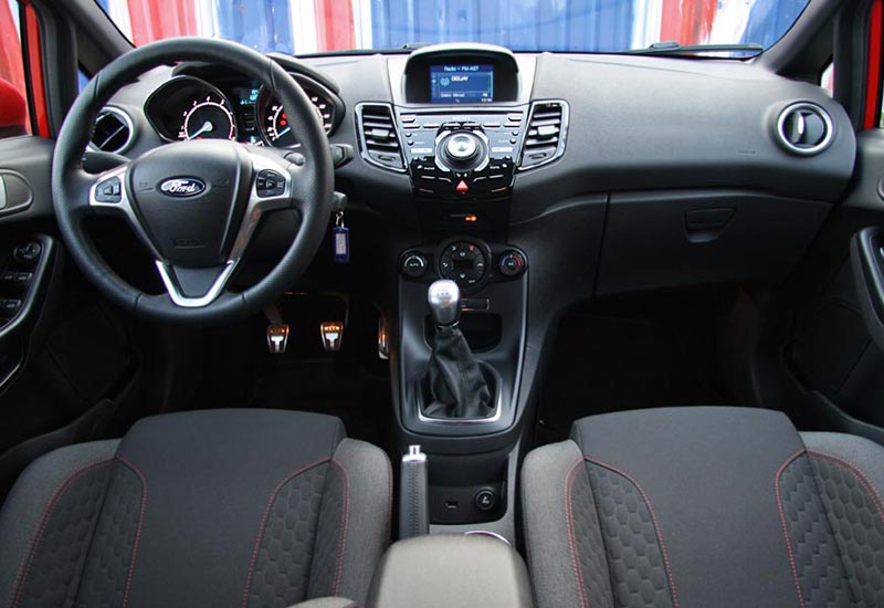 Αλλαγές υπάρχουν και στο εσωτερικό του Ford Fiesta ST-Line, το οποίο διατηρεί την ποιότητα των υπόλοιπων εκδόσεων, γαρνίροντάς τη με λίγη γεύση από ST. Συγκεκριμένα, το εσωτερικό του Fiesta ST-Line έχει σπορ πινελιές, που παραπέμπουν στο ST με βασικότερη όλων την μαύρη οροφή και τα σπορ καθίσματα με τις κόκκινες ραφές. Το τιμόνι είναι τριάκτινο, ενώ ο επιλογέας του κιβωτίου ταχυτήτων, τα αλουμινένια πεντάλ και τα μασπιέ με λογότυπο ST-Line ολοκληρώνουν τις αλλαγές. Από πλευράς χώρων για τους επιβάτες, το Fiesta βρίσκεται στο μέσο όρο της κατηγορίας του, ενώ οι αρκετοί χώροι για μικροαντικείμενα διευκολύνουν σημαντικά ειδικά στις καθημερινές μετακινήσεις. Ενήλικες με κανονικό ύψος δε θα δυσκολευτούν να φιλοξενηθούν στη δεύτερη σειρά καθισμάτων, αφού θα βρουν όλο τον απαιτούμενο χώρο για τα γόνατα και τα κεφάλια τους. Εν τω μεταξύ, σημειώστε πως το μήκους 3,95 μέτρων Fiesta έχει χώρο αποσκευών 290 λίτρων, νούμερο που είναι από τα καλύτερα της κατηγορίας.