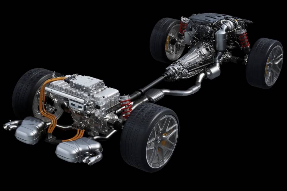 Πέρα από τις καταιγιστικές επιδόσεις στην ευθεία, η ριζικά διαφορετική μηχανολογική διάταξη υπόσχεται και καλύτερα δυναμικά χαρακτηριστικά. Ένα από τα πιο σημαντικά πλεονεκτήματα είναι η μείωση του βάρους στον εμπρός άξονα, καθώς με 160,5 κιλά, ο Μ139 ζυγίζει 48,5 λιγότερα από τον Μ177 V8 της σημερινής C63 4Matic. Ακόμα και με την ενσωμάτωση της υβριδικής αρχιτεκτονικής, το συνολικό βάρος είναι χαμηλότερο. Επιπλέον, τοποθετείται πιο κοντά στο έδαφος σε μια προσπάθεια να χαμηλώσει το κέντρο μάζας. Το σύστημα τετρακίνησης 4Matic+ θα κατανέμει τη ροπή στους δυο άξονες, αλλά με έμφαση στα πισωκίνητα χαρακτηριστικά – όπως στην E63.