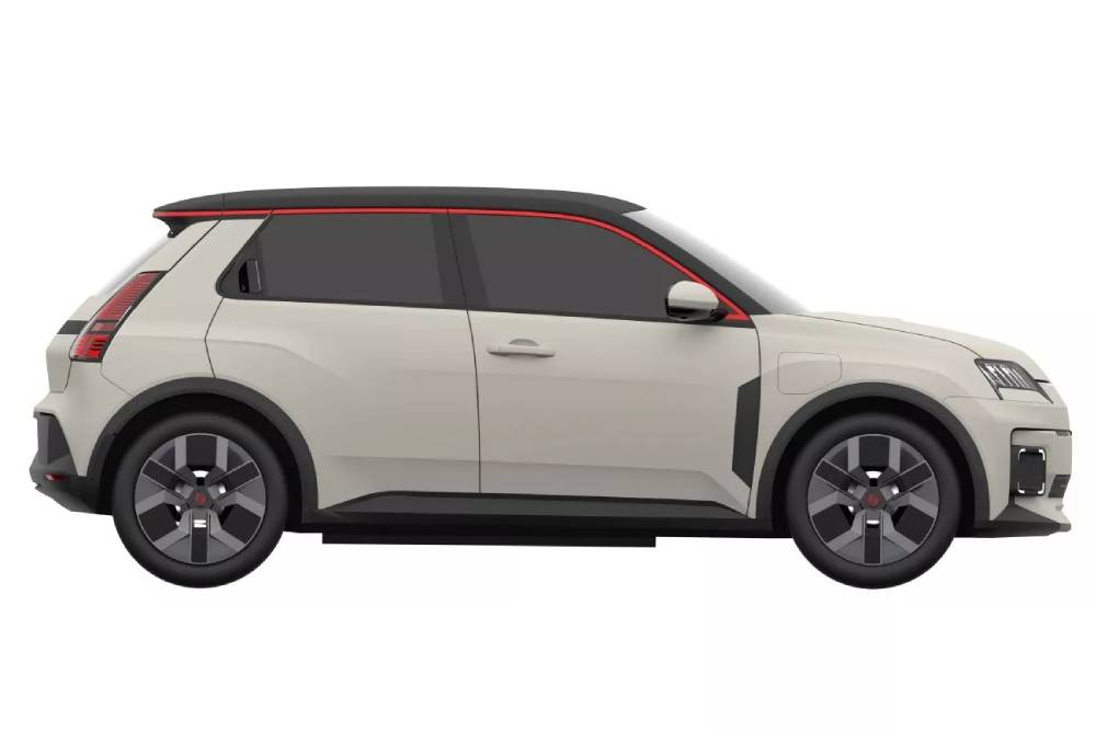 Η τελική μορφή του σύγχρονου 5αριού χαρακτηρίζεται από μια τρομερά επιτυχημένη παραλλαγή των φωτιστικών σωμάτων του αρχέγονου, τόσο εμπρός όσο και πίσω, ενώ παράλληλα μεταφέρεται και η σήμα-κατατεθέν διαμόρφωση του εμπρός μέρους υπό γωνία. Τα πίσω φανάρια δεν θα μπορούσαν παρά να είναι κάθετα, ενώ στο καπό παρατηρούμε ένα κενό πάνω αριστερά (δεξιά όπως βλέπουμε) – εκεί που στο πρώτο R5 δηλαδή, βρίσκαμε έναν αεραγωγό. Στο καινούργιο θα πάρει τη θέση του μια οθόνη, που φιλοξενεί ένα φωτιζόμενο «5» στο καπό και λειτουργεί παράλληλα ως ένδειξη για το ποσοστό ενέργειας στη μπαταρία. Όπως βλέπουμε στις πίσω πόρτες, οι χειρολαβές είναι τεχνηέντως ενσωματωμένες στο πλαίσιο των παραθύρων, ενώ το άνω μέρος του (του πλαισίου, και γύρω-γύρω στην οροφή) «ζωγραφίζεται» από ένα κόκκινο σιρίτι.
