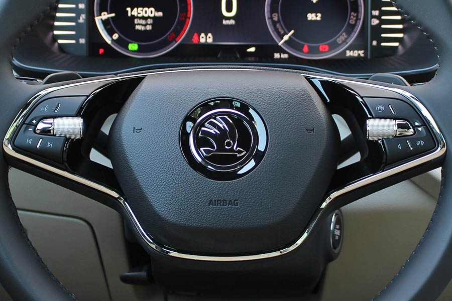 «Ένα από τα κίνητρά μας για ένα τιμόνι δύο ακτίνων ήταν ό,τι το διάκτινο τιμόνι είναι πιο βολικό και πρακτικό, ενώ η τοποθέτηση των ακτίνων οριζόντια συνδέεται οπτικά με τις άλλες γραμμές του εσωτερικού», λέει ο Peter Olah, επικεφαλής εσωτερικού σχεδιασμού- αρχιτεκτονικής στη Skoda Auto.