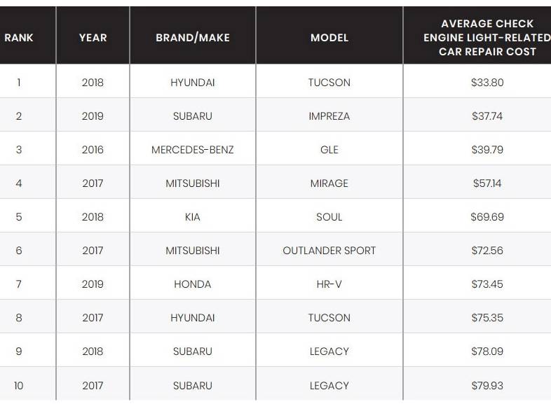 Μοντέλα με την πιο φθηνή επισκευή βλάβης λόγω check engine