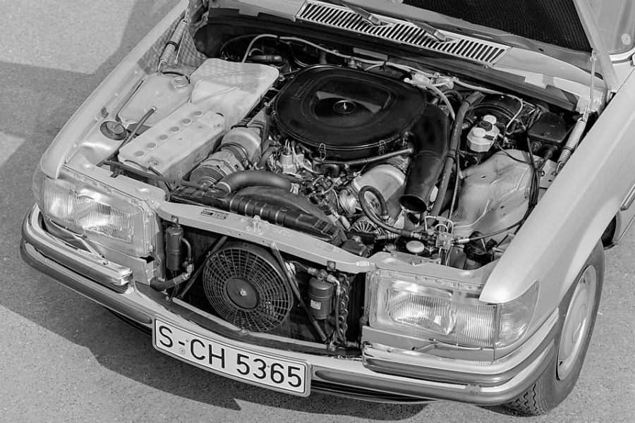 Μια επιβλητικότητα που ενισχύεται από τον υπεύθυνο κίνησης, που δεν είναι άλλος από τον χειροποίητο κινητήρα. Ο V8 των 6.834 κ.εκ. κατασκευαζόταν στο χέρι και δοκιμαζόταν επί 265 συνεχή λεπτά στον πάγκο, πριν λάβει το «ΟΚ» για τοποθέτηση στο μηχανοστάσιο της S-Class. Με μονό εκκεντροφόρο επικεφαλής και σφυρήλατα «βαρέα μέταλλα» (στρόφαλος, μπιέλες και πιστόνια), εκτός από τέρας αντοχής, ο M100 ήταν εκ των πρωτοπόρων του ηλεκτρονικά ελεγχόμενου ψεκασμού, χρησιμοποιώντας το σύστημα K-Jetronic της Bosch.