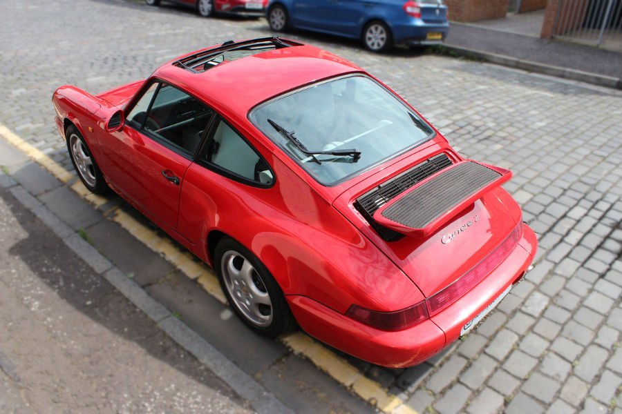 Παρά το σχεδόν κάθετο μούτρο, το γερμανικό κουπέ εμφάνιζε συντελεστή οπισθέλκουσας 0,32. Συν τις άλλοις, στο χαρακτηριστικό πίσω μέρος, φιλοξενείτο ένα ενεργό spoiler! Η αεροτομή εκτείνονταν αυτόματα στα 100 χλμ./ώρα (στα 72 χλμ./ώρα -45 μίλια/ώρα- για τη Βόρειο Αμερική) και επέστρεφε στη θέση του στα 25 χλμ./ώρα. Φυσικά, υπήρχε η δυνατότητα ενεργοποίησης κατά βούληση του οδηγού, μέσα από τον ανάλογο διακόπτη στο ταμπλό.