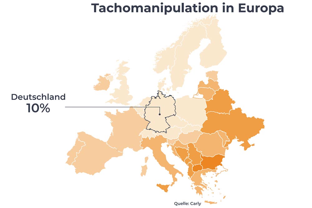 Βέβαια δεν είναι όλα τα κράτη της Ε.Ε. στο ίδιο επίπεδο. Για παράδειγμα στη Γερμανία το ποσοστό των μεταχειρισμένων αυτοκινήτων με γυρισμένα χιλιόμετρα είναι περίπου 10%, όταν στη Μάλτα φτάνει το 44% και στη γειτονική Βουλγαρία το 42%. Υψηλά ποσοστά εμφανίζουν ακόμα η Ουκρανία και η Λευκορωσία, ενώ ακολουθούν Ιταλία, Ελλάδα, Ρουμανία και Βαλκανικές χώρες. Στο αντίθετο άκρο βρίσκονται Τσεχία, Πολωνία, Αυστρία, Αγγλία και τα Σκανδιναβικά κράτη, όπως μπορείτε να δείτε στον παρακάτω χάρτη.