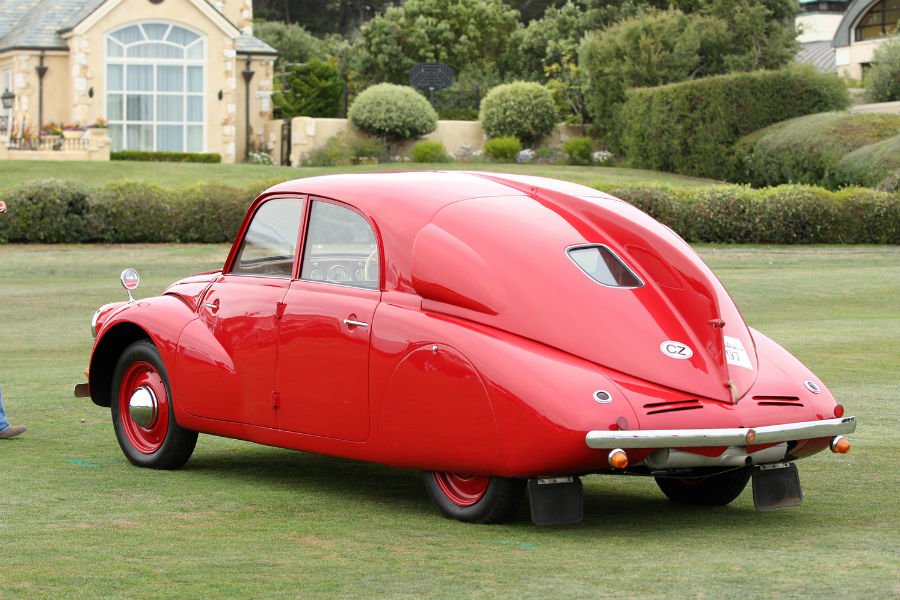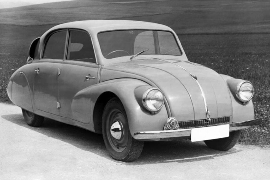 Παρατηρείστε τα δυο εξογκώματα στο πλάι του πίσω μέρους. Αυτοί είναι οι αεραγωγοί για την ψύξη του επίπεδου τετρακύλινδρου και αερόψυκτου κινητήρα των 1.759 κ.εκ, με απόδοση 40 ίππων. Σας θυμίζει κάτι η περιγραφή «πισωμήχανο αυτοκίνητο με αερόψυκτο boxer μοτέρ»; Πέραν αυτών, το T97 διέθετε ανεξάρτητη ανάρτηση σε όλους τους τροχούς, μπορούσε να φτάσει τα 130 χλμ./ώρα και εμφάνιζε συντελεστή οπισθέλκουσας Cd 0,32. Υπενθυμίζουμε, εν έτει 1936. Δυο χρόνια νωρίτερα, το μεγαλύτερο και V8 T77 είχε αφήσει τον κόσμο άφωνο με Cd 0,24 και τελική άνω των 150 χλμ./ώρα (αν και κάποιες αναφορές κάνουν λόγο για Cd που αφορά μοντέλο σε κλίμακα 1:5).